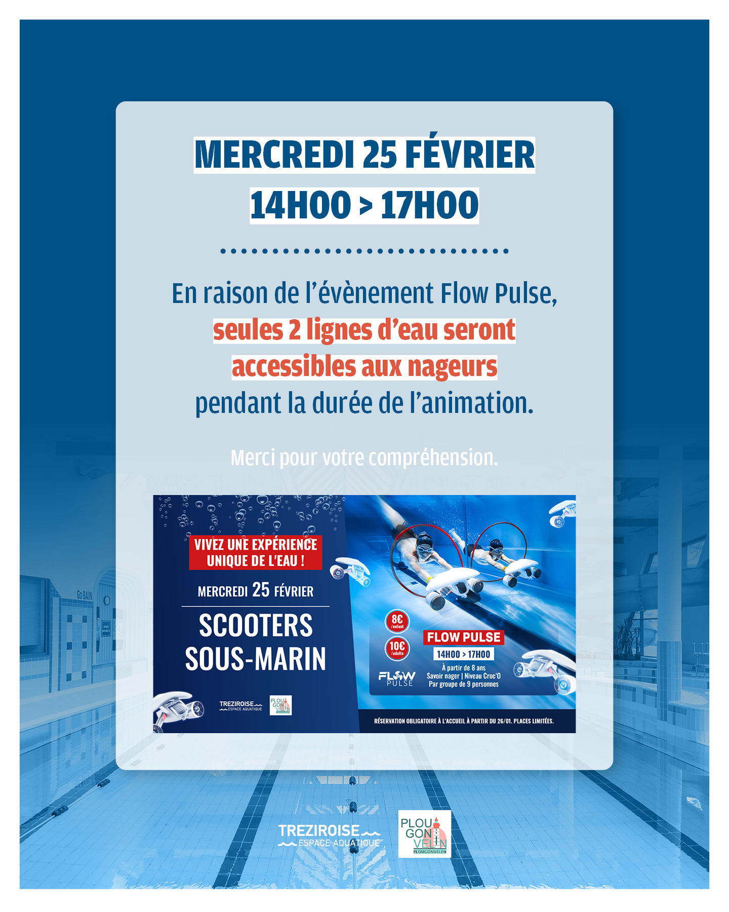 Lundi 23 février : le bassin sportif est fermé au public aujourd’hui.